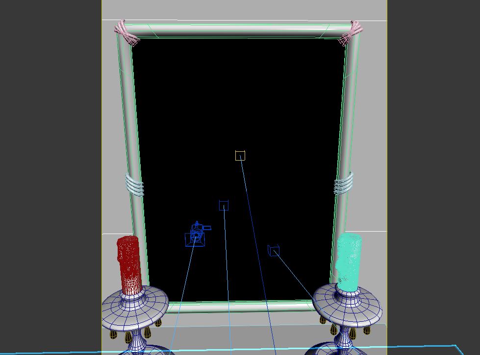 Project for Chris Coy's A Little Death exhibit at the Anat Ebgi gallery in Los Angeles. Part of the show involved a mirror which you couldn't see yourself in, causing the illusion of the viewer being a vampire. This mirror was actually a rendering of the contents of the room printed onto an aluminum sheet. I was responsible for creating the model of the space and then creating a rendering from that model that could be used to make the print. The above is a photo of the final result